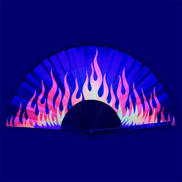 Este abanico tiene tecnología ultravioleta que brilla con la luz neón.